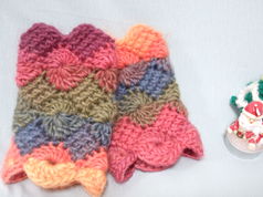 ロングピッチの段染め糸で、フラワーアフガンクロッシェのハンドウォーマーを編みました。