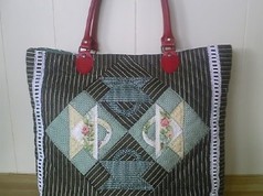 グリーンとドットをテーマに、ログキャビンの手法で作りました。大容量なので、マザーズバッグとしても使えます。中にあるポケットもログキャビンの手法で作り、使い勝手もよく、見た目もかわいく仕上がりました。とてもカラフルで、可愛いバッグになりました。よろしくお願いします。