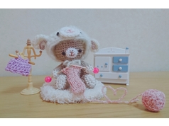 “羊の被り物をして編み物をするクマさん”を編みました。
