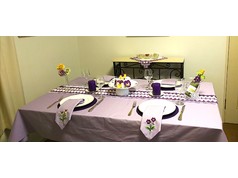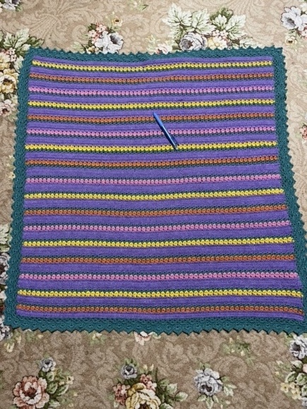 ラベンダー畑にチューリップをイメージした膝掛けです。