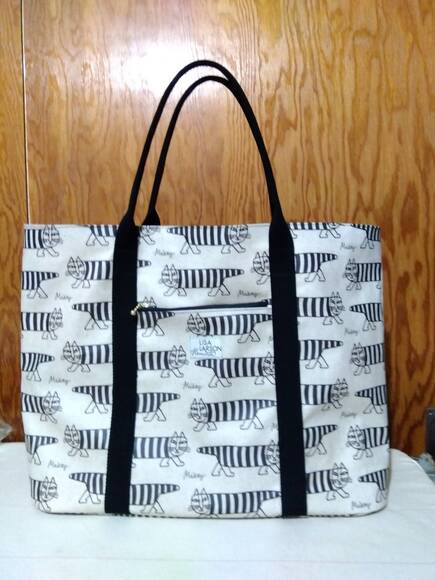 姉の大好きなリサラーソンの生地で、姉へのプレゼントとして作りました。接着芯を貼ったので裏地を合わせてから裏返すのがちょっと難しかったです。でも、完成したら達成感バリバリでした。