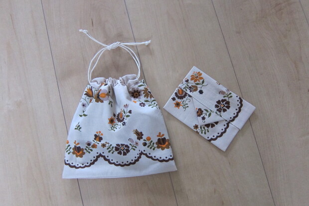 おそろいの生地でミニ巾着とティッシュケース作りました