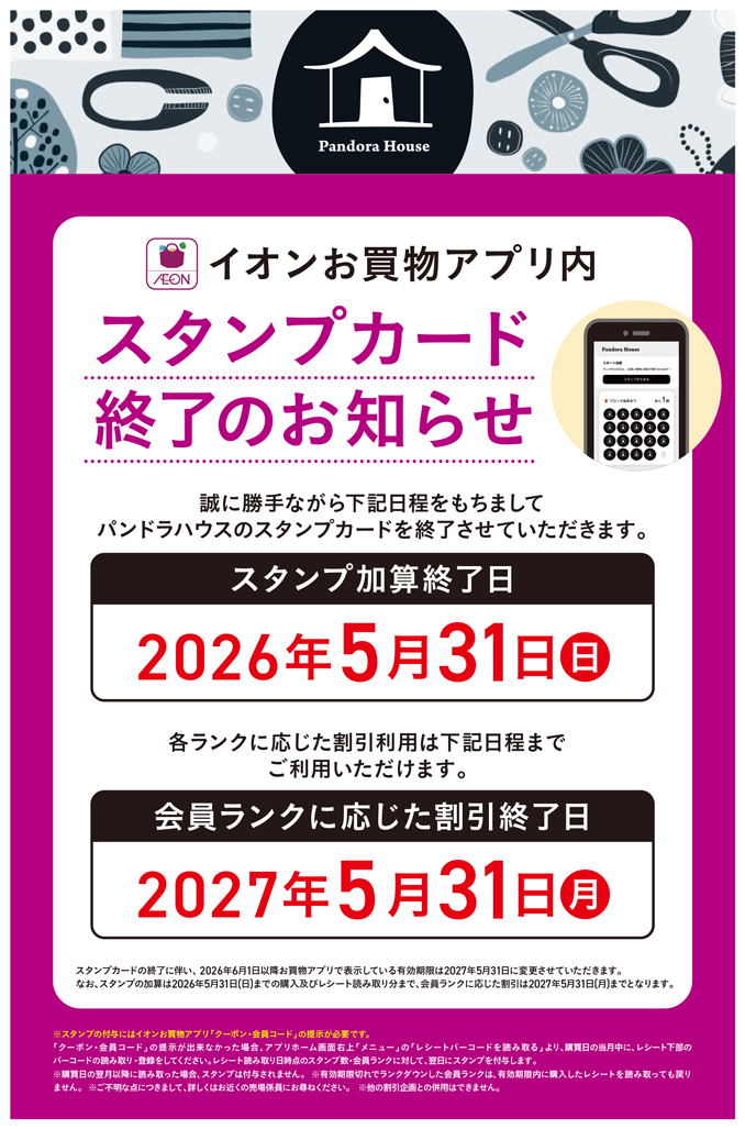スタンプカード終了のお知らせ